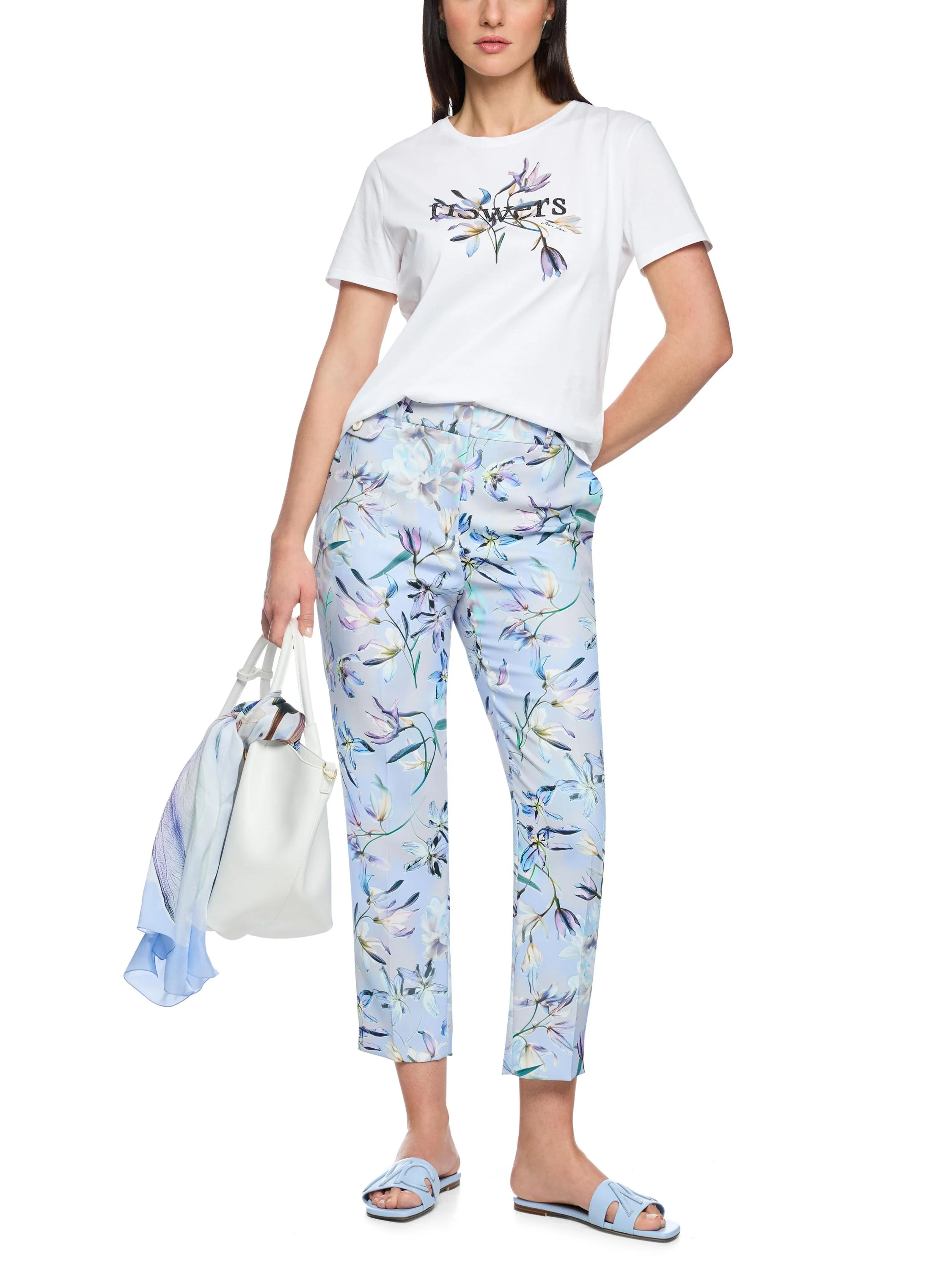 Kurzarm-T-shirt "Rethink Together"|Das klassische Kurzarm-T-Shirt aus Bio-Baumwolle zeigt sich mit einer geraden Form. Auf der Brust sorgt ein Blumenprint zusammen mit dem Schriftzug „Flowers“ für ein feminines Highlight. Die dezenten Hotfix-Steine setzen glitzernde Akzente und verleihen dem Shirt einen modernen, eleganten Touch. Das T-Shirt trägt das Nachhaltigkeitslable "Rethink Together".|Gerade geschnitten|Rethink Together|Rundhalsausschnitt|Weicher Griff|Das Model ist 179 cm groß und trägt N3/38.